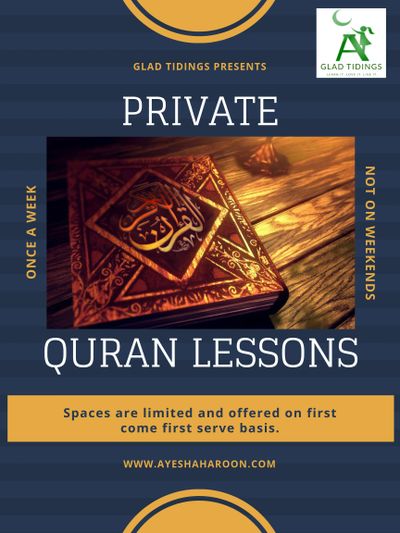 Nothing beats like one-on-one learning. Register now for private Quran lessons with Sister Ayesha Haroon.